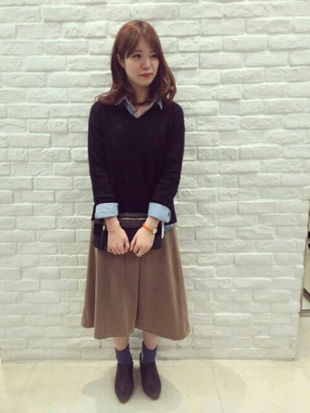 Vネックニットは1枚着でももちろん、 ブラウスと重ね着しても可愛くてだいすき👠👗 スカートはトレンドの起毛素材。 すっきり見えるシルエットと丈感が 嬉しいです😏👍