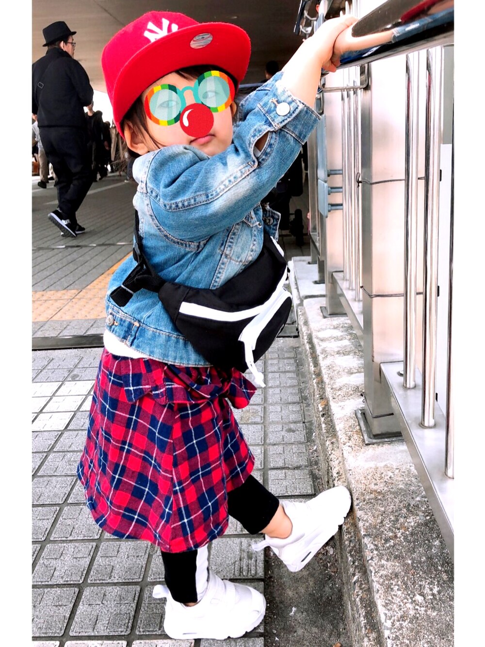 お花見いってきました🌸 パパがおソロでかぶりたいと買ってくれたキャップスタイルで(*^^*)スカートはシャツワンピを腰巻きしました♫ あったかかった〜◎ジージャンすぐ脱いでた(笑)