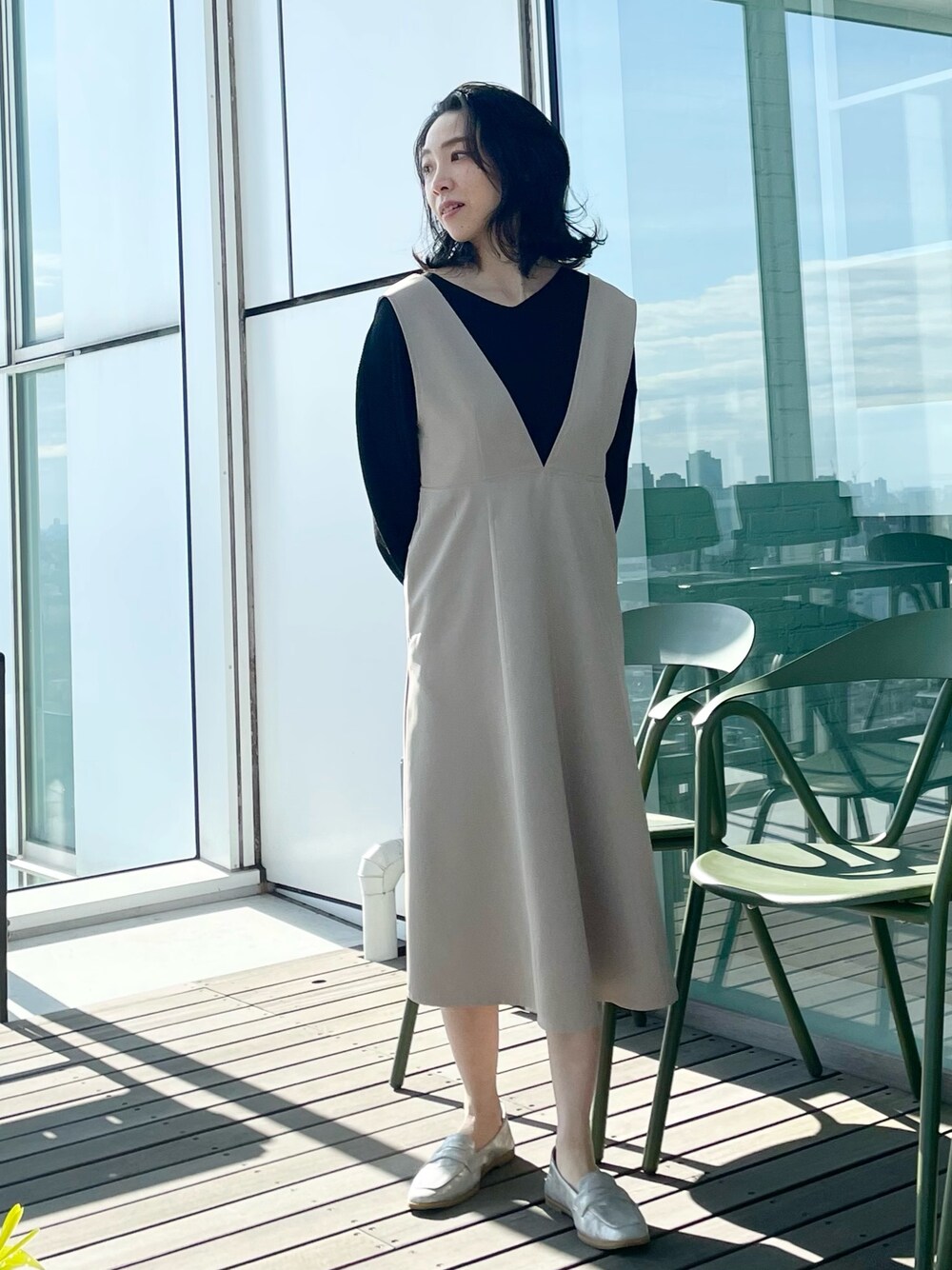 あや(SHOO・LA・RUE)のスカート「◆一枚で主役級!深Vネックジャンスカ」を使ったコーディネート