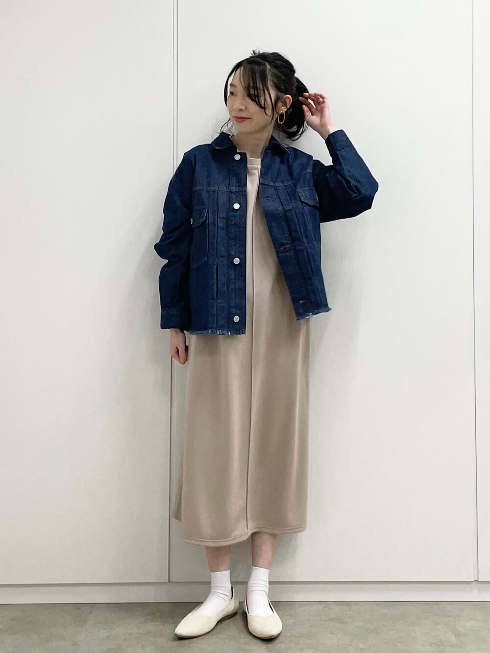 春のお出かけにもおすすめのワンピーススタイルにトレンドのデニムをプラスしました。 ゆったりシルエットなので、気になる腰回り等を上品にカラーできます◎