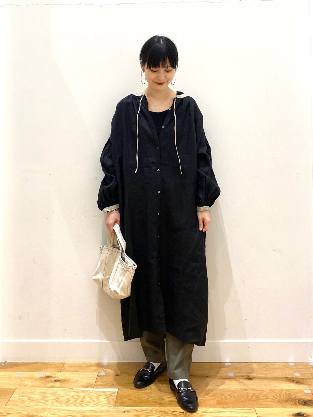 秋山 里織のワンピース「バイカラーリネンワンピース」を使ったコーディネート