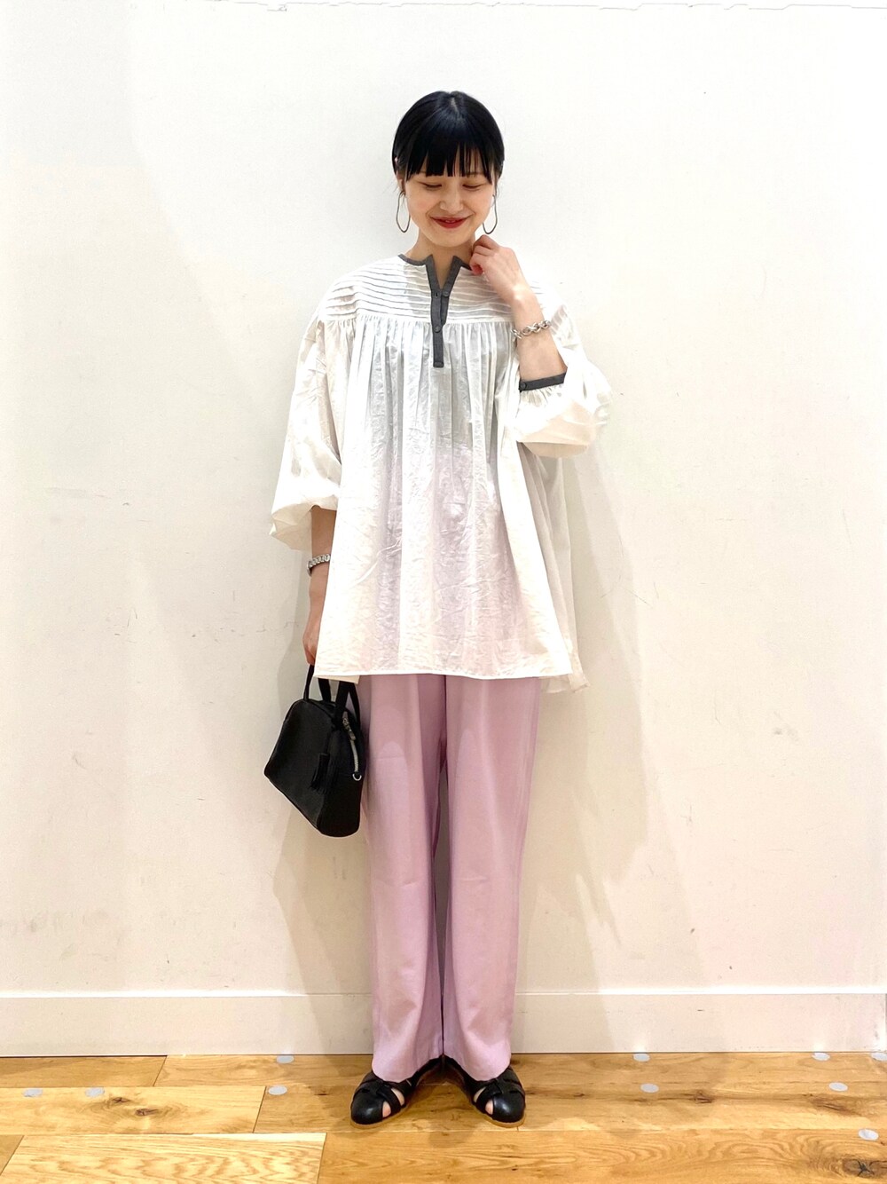 秋山 里織のシャツ/ブラウス「コットンボイルピンタックブラウス」を使ったコーディネート