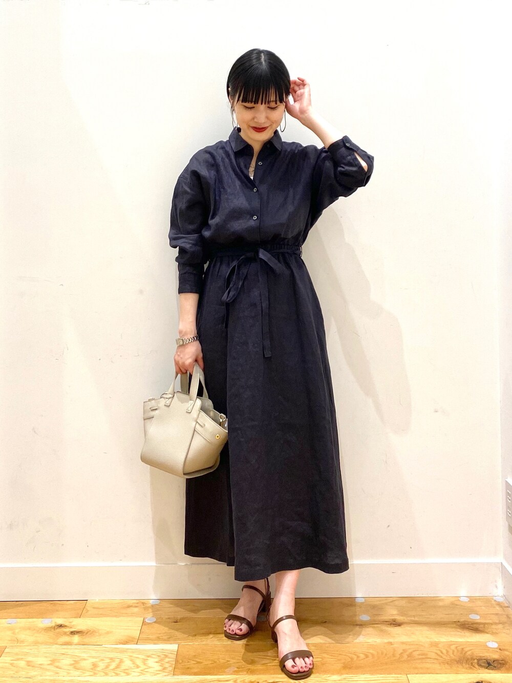 秋山 里織のワンピース「リネンウエストギャザーワンピース」を使ったコーディネート