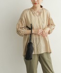 秋山 里織のシャツ/ブラウス「シアーストライプギャザーブラウス」を使ったコーディネート