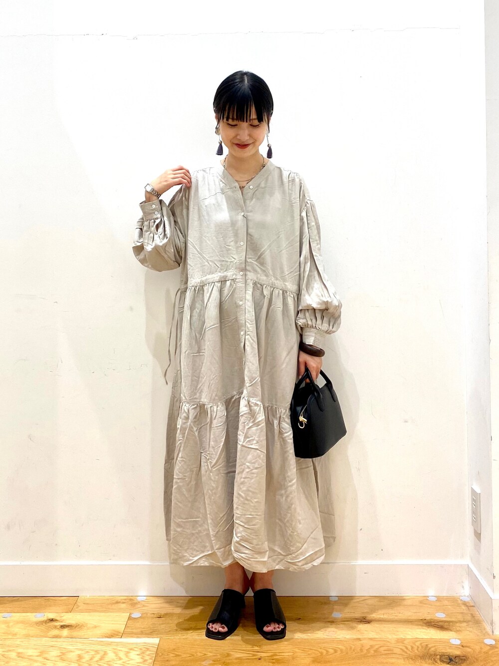 秋山 里織のワンピース「ティアードギャザーワンピース」を使ったコーディネート