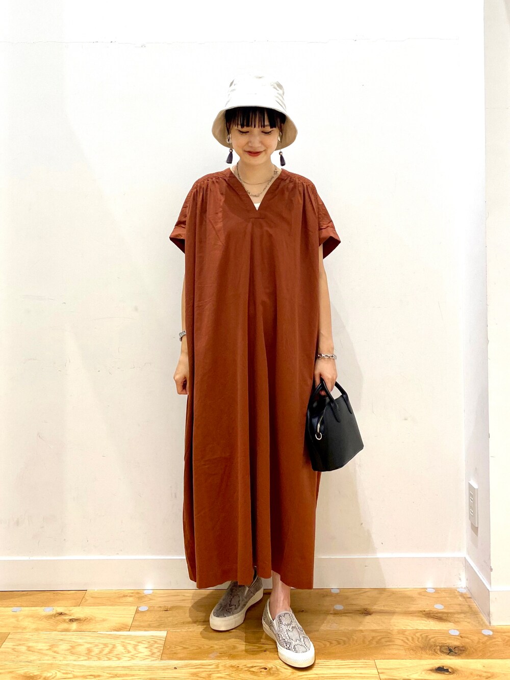 秋山 里織のハット「コットンリネンパネルハット」を使ったコーディネート