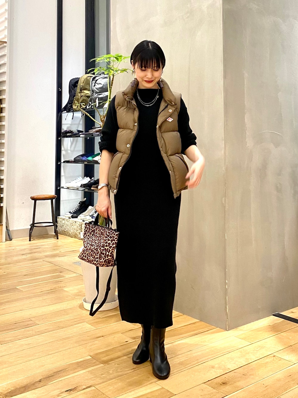 秋山 里織のダウンベスト「DANTON DOWN VEST」を使ったコーディネート