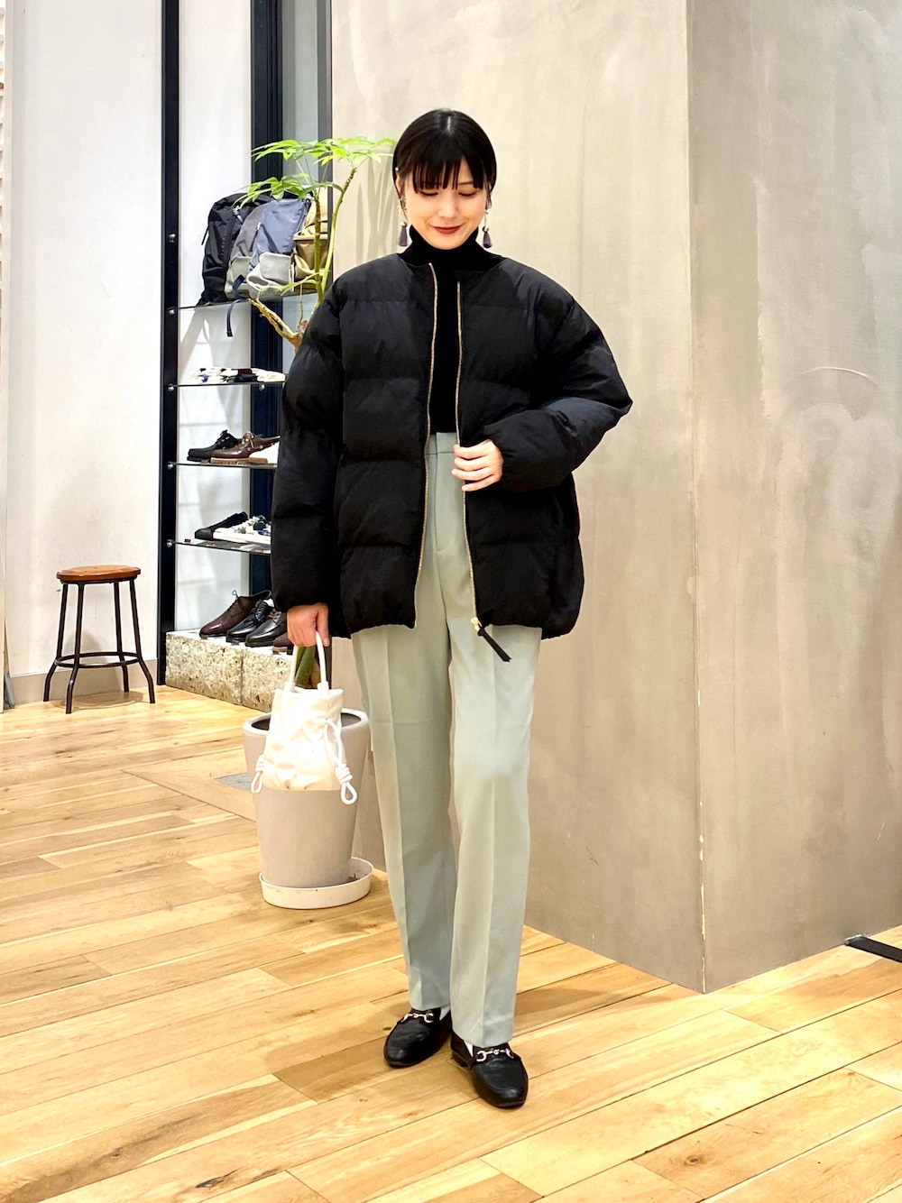 秋山 里織のダウンジャケット/コート「ノーカラーミドルブルゾン」を使ったコーディネート