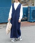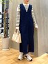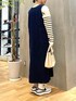 ジャンパースカートはすっきりとしたシルエットですが、身体のラインは拾わずお召しいただけます◎ 合わせるトップスに合わせて2WAYで着られるのもうれしいポイントです♩ 今回はボーダーのニットと合わせてカジュアルにスタイリングしました!