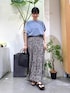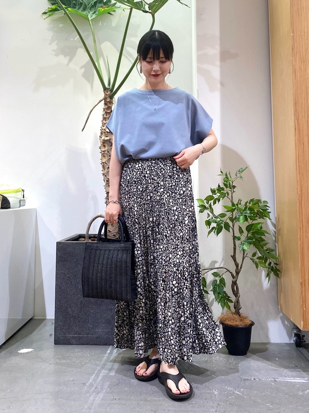 Tシャツはさらっとした肌触りと、しっかりとした程よい厚みがあり着心地良いです◎ 首元のあきも詰まりすぎず、腕周りもカバーしてくれるので着やすいデザインです♩ くすみブルーのカラーはブルベ夏の方には特におすすめです! スカートは落ち感のあるきれいなプリーツで、Tシャツとの相性抜群です◎ 丈は長めで、身長158㎝で足首くらいです♩ ウエストはゆるめのゴムなので圧迫感もなく、とても楽にお召しいただけます!
