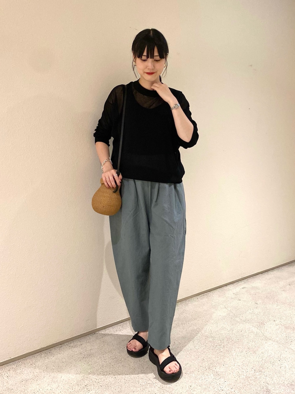 秋山 里織のニット/セーター「コットンシルクシアーニットプルオーバー」を使ったコーディネート