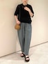 トップスはさりげないシアー感なので、とても着やすいです◎ 大きすぎず小さすぎずなサイズ感でパンツにもスカートにも合わせやすく着回し力も抜群です♩ 中にはタンクトップやキャミソールを合わせるのがおすすめです! パンツはかぐれらしい丸みのあるシルエットがとてもかわいいです◎ 裾にかけて細くなるのですっきりとお召しいただけます♩ カラーは絶妙なくすみカラーで合わせやすく新鮮な印象に。