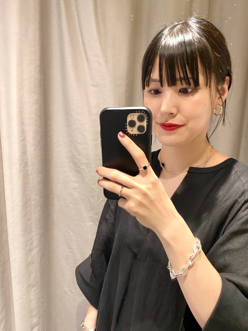 秋山 里織のイヤリング「ミニフープイヤリング」を使ったコーディネート