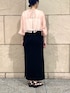 一目惚れする方がめちゃくちゃ多いピンクのシアートップスです! 着た時の透明感やつるっとした素材感がお顔映えしてくれます♩ 前後2WAYではおりとしても着られるところも◎ これは是非、皆様にゲットしていただきたいアイテムです! スカートは着回ししやすすぎて、出番多めです! 何でも合うのにストレッチ効いてて履きやすい! サイドのスリットは小さめなファスナーで開き具合を調節できるので、バランスを見て肌見え感、抜け感も演出できます♩
