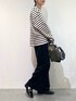 秋山 里織(かぐれ阪神梅田店)のTシャツ/カットソー「ボーダーワイドカットソー」を使ったコーディネート