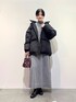 ダウンはおしりが隠れるくらいの丈感です◎ ゆったりとしたシルエットなので裾は絞ってすっきりとさせました! ワンピースはフレアなシルエットが女性らしい印象に♩
