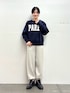 ダウンは軽さにびっくりです◎ 薄手なので暑くなりすぎず、もこもこが苦手な方におすすめです! ニットはロゴのデザインがポイントに。 スウェットライクなニットパンツと合わせてカジュアルにスタイリングしました!