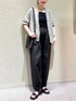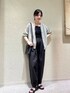 カーディガンは2色買いされる方も多いくらい大人気のものです! 薄すぎずな素材感でさらっとしたドライタッチな肌触りです♩ ボタンが上の方までついていて、ボタンを閉じると肌見えが少ないのでお仕事などのシーンにも使えそうです◎ パンツはシルエットがとてもきれいです! クロップド丈で長すぎず、たぽっとしたシルエットなのにすっきり見えます♩