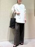 秋山 里織のシャツ/ブラウス「コットンシルククルーネックプルオーバー」を使ったコーディネート