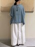 【トップス】 軽やかで柔らかなローン素材が心地よいワイドプルオーバー。やや透け感のあるシアーな質感が、涼しげで女性らしい印象に。リラックス感がありつつも、品のある佇まいが魅力です。 【ボトムス】 細やかな刺繍が施された、ふんわりとしたティアードシルエットのパンツ。柔らかなコットン素材とオフホワイトのカラーで、軽やかで優しい雰囲気を演出します。 【アクセサリー】 クリア素材のドロップモチーフが、シアーなトップスと好相性。透明感のあるアクセントで、夏らしい抜け感をプラス。 【シューズ】 シンプルでシャープなデザインのブラックサンダルが、全体を引き締めてバランス良くまとめてくれます。 ✔️スタイリングポイント ・透け感のあるトップスとティアードパンツでふんわりと軽やかに ・透明感のあるネックレスが夏らしさを引き立てる ・足元は黒で引き締めて、甘さとモード感を両立 ・全体にやさしいトーンでまとめつつ、ディテールで存在感を演出
