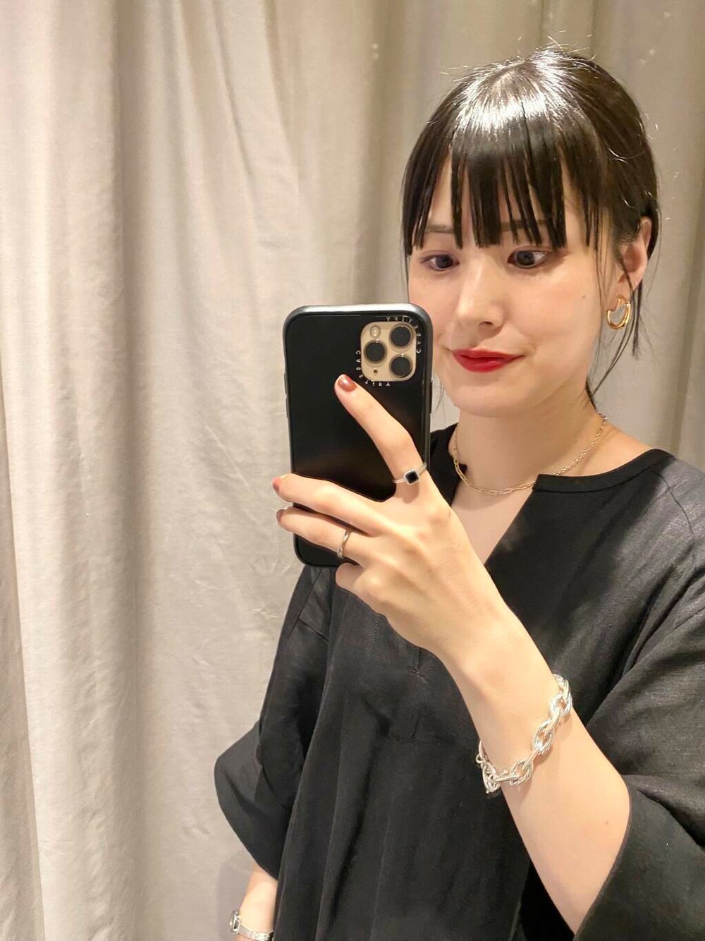 秋山 里織のリング「decor『デコール』 石のリング オニキス」を使ったコーディネート
