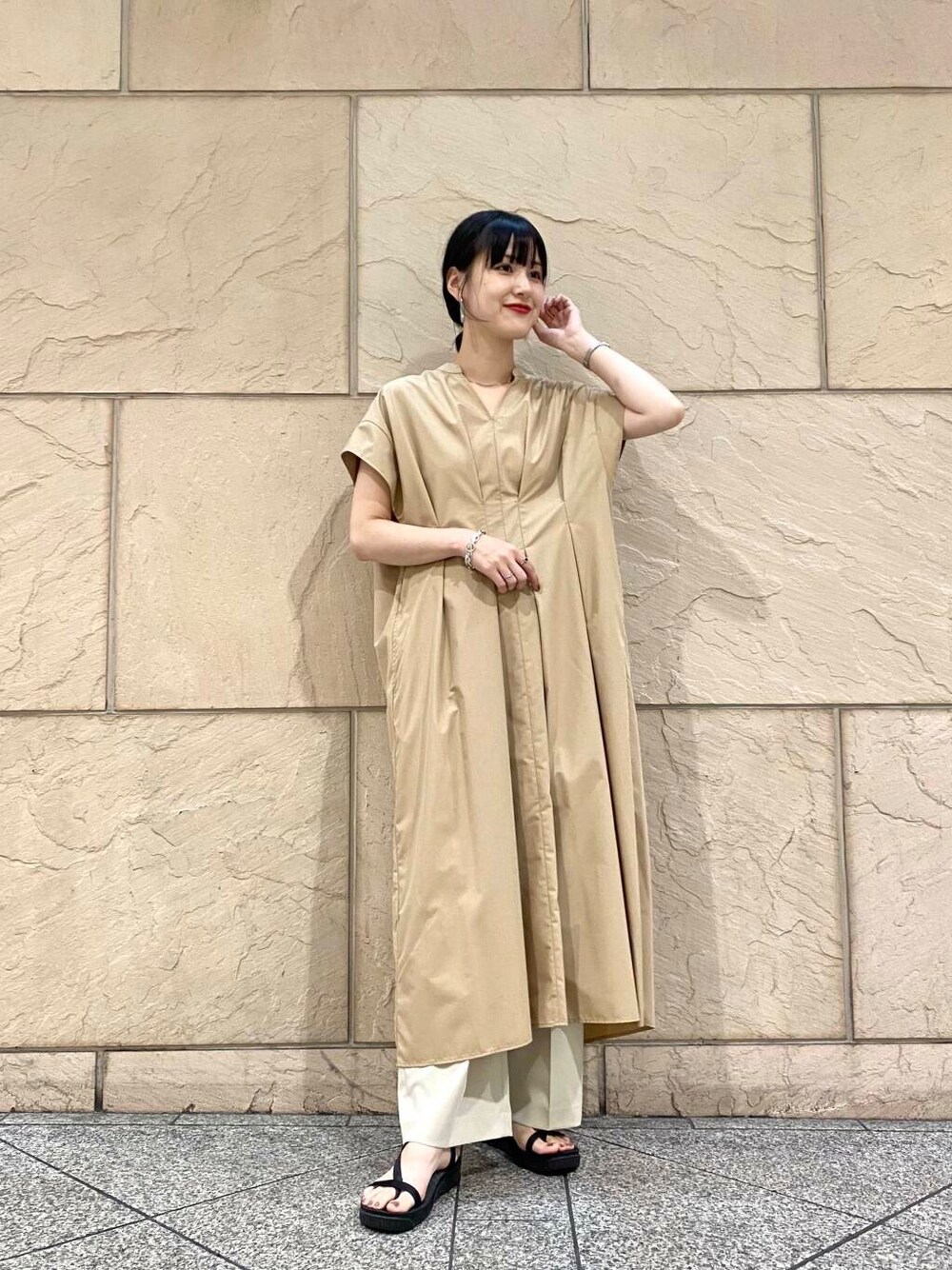 タックのデザインがかわいいワンピース◎ 秋に向けてベージュを選びました♩ さらっと着れておしゃれな印象になります! パンツを重ねるとより雰囲気が出て◎