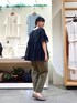 ブラウスはDOORSらしいデザイン◎ さらっと軽い着心地で着やすいのに Tシャツよりもきちんと感が出るので何枚あっても出番が多めです! パンツは足首丈で長すぎずすっきりと。