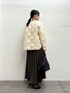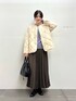 ダウンはとても軽い羽織り心地です◎ ノーカラーですっきりきれいめな印象に。 ニットはやわらかい肌触りです♩ カラーがかわいいのでスタイリングのポイントになります! スカートはシンプルなプリーツのデザインで合わせやすく着回し力も抜群です◎