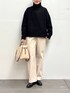 ニットはタートルネックで温かいです◎ 大きすぎず小さすぎずなサイズ感なのでパンツにもスカートにも合わせやすいです♩ パンツは細めのコーデュロイなのできれいな印象に。 太すぎずすっきりとしたシルエットです!