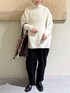 【トップス】 かぐれ ウールハイゲージタートルネック IVORY 上質なウール素材を使用したハイゲージタートル。なめらかな肌触りと軽やかな着心地で、インナーとしてもメインとしても活躍します。淡いアイボリーがやわらかな印象を与え、秋冬のスタイリングに上品さをプラス。 【ベスト】 かぐれ ペルーワイドニットベスト IVORY ふっくらとしたペルーウールの温かみを感じるワイドベスト。ゆったりとしたシルエットで、重ね着してももたつかず快適。ナチュラルなアイボリーカラーがやさしいトーンのレイヤードを演出します。 【ボトムス】 かぐれ ウールテーパードパンツ BLACK 美しいシルエットが魅力のウールテーパードパンツ。上品な落ち感とすっきりとしたラインで、オンオフ問わず着まわせる万能アイテム。シックなブラックがスタイリングを引き締めます。 ✔️スタイリングポイント ・アイボリー×ブラックの上品で洗練された配色 ・異素材の重なりで奥行きのあるレイヤードスタイルに ・足元はレザーシューズで大人っぽくまとめて