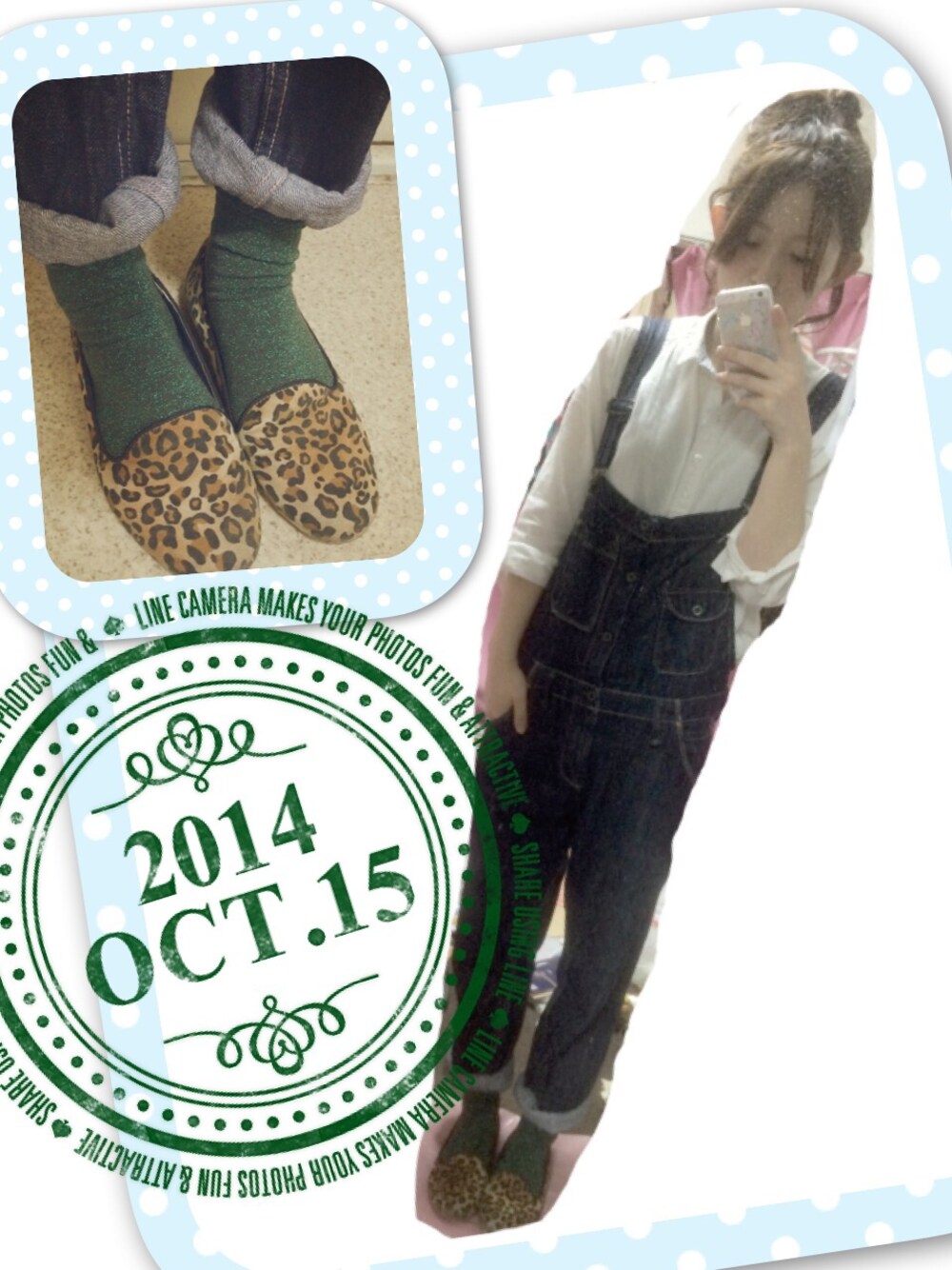 オーバオール好きなんです🙆 白シャツと足元のレオパードで 幼さ抑えめ〜 動きやすいのがいちばんですよ!!!!