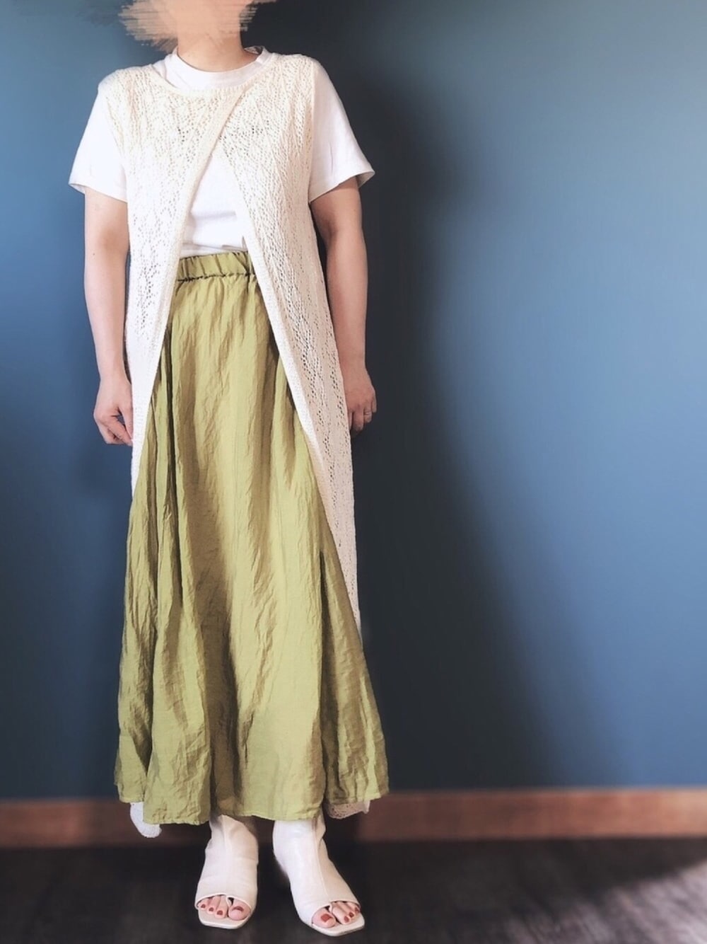 ご覧いただきありがとうございます😊♪ イイね♪コメント♪フォロー♪お気に入り♪ そして素敵なフォルダに入れていただき ありがとうございます😆🙏✨ この前も着ましたが ベストの前後反対で着ました 腰回りが隠れて安心👍 緑のスカート💚で ちょっと色をいれました🌈 ではではまたー次の投稿で☺️✨ また月曜日👍 頑張っていきましょうね🤗✨