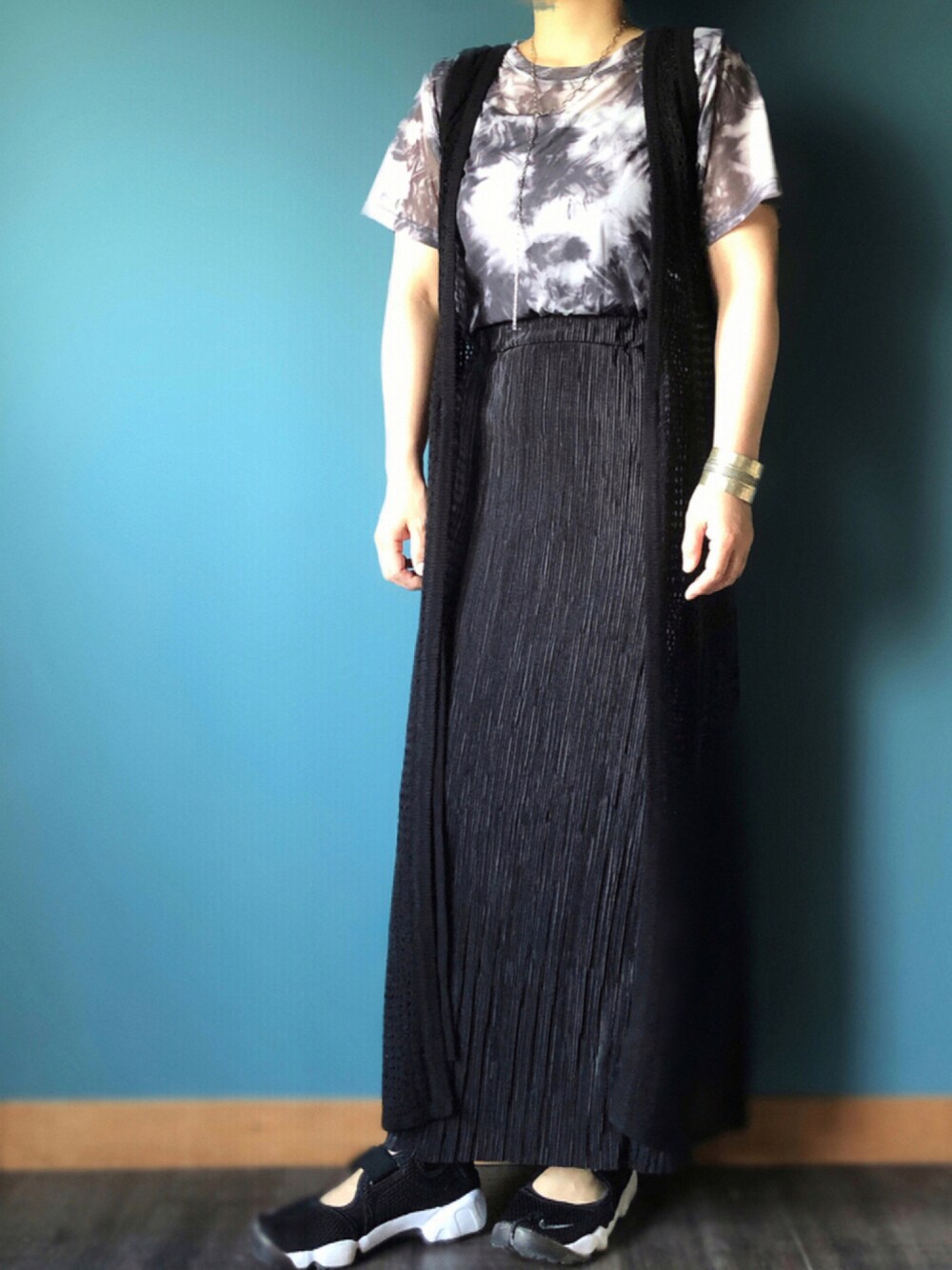 いつもありがとうございます♪😊♪ 暑苦しいですが🥵笑 アミアミワンピース羽織ってみました🖤