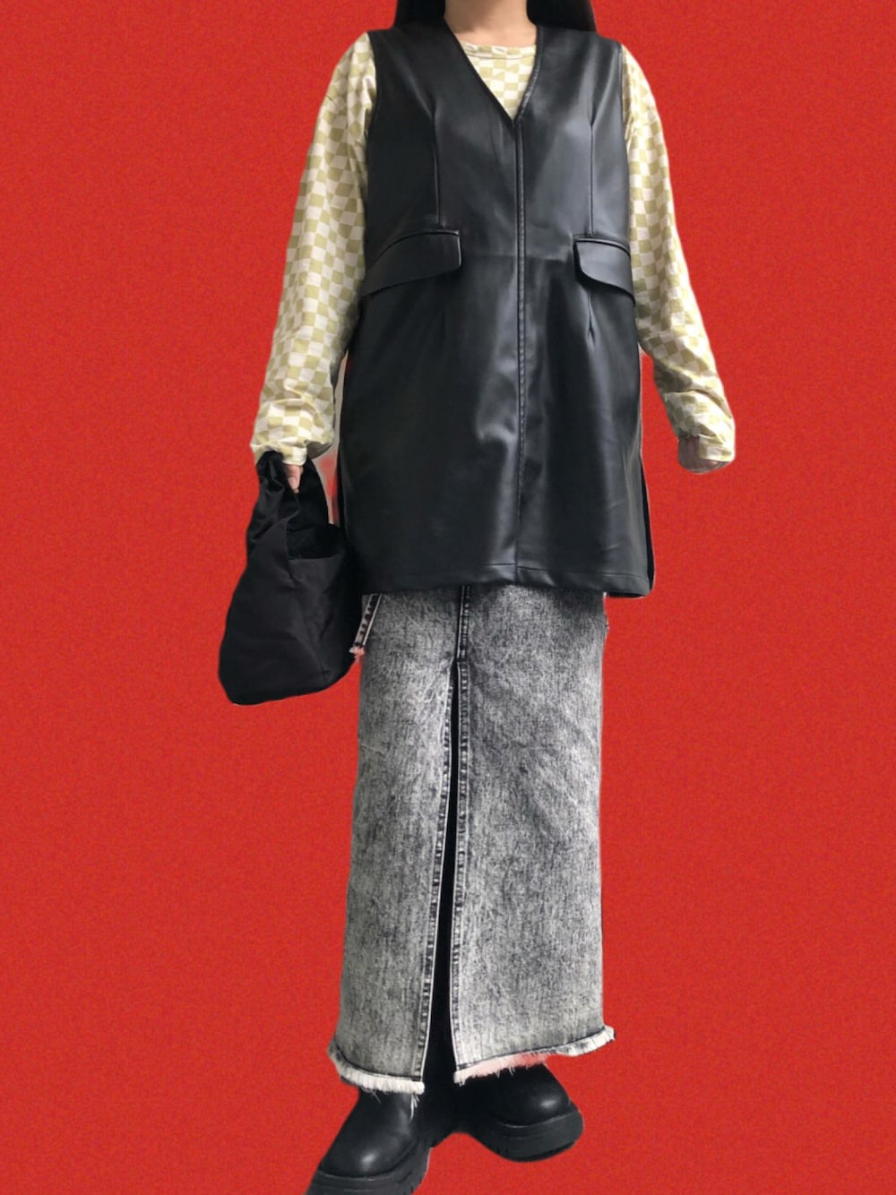いいね👍お気に入り❤️フォロー✨ フォルダイン🗂ありがとうございます😊🙏❤️✨ 本日のコーデのポイント🤟 ★チェックのロンT🏁 ほんとは黒がほしかったな…🥲 たかこちゃんとおそろだった🙈💕 ★レザーのベスト🦺🎶 中に着るもので印象かわるかも🧐 ★ケミカルスカート 以上です🎤 月曜日ですねー😤 頑張りますか…✊❤️ では、また次の投稿にてー😊🙏✨