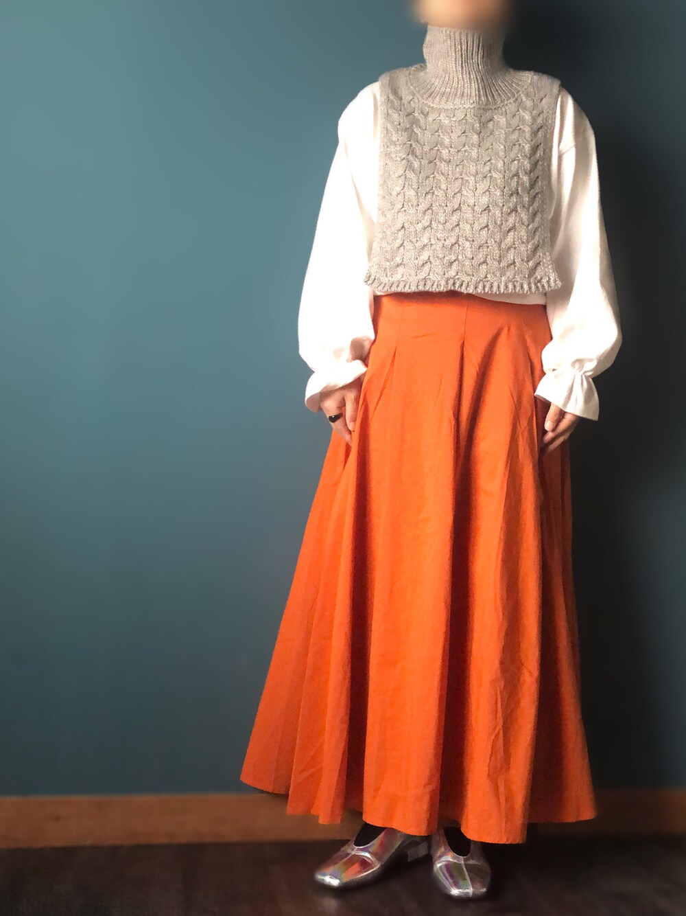 ご覧いただきありがとうございます😊🙏❤️ 本日のコーデのポイント🎶 ★つけ襟 色違いで買ったつけ襟が今年も活躍👍 ★オレンジスカート🍊 お気に入りです🧡 ★ぽわん袖 以上です🎤 いいね👍お気に入り❤️フォロー✨ フォルダイン🗂ありがとうございます😊🙏💕✨