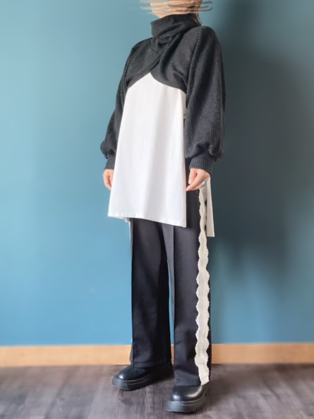 おはようございます♪ 本日のコーデのポイント🐶 ⭐︎ショート丈の変わった形のニット 形がカワイイ🖤 ⭐︎サイドレースのパンツ 横にレースって😍 ⭐︎カラーのバッグ持てば良かった 以上です🎤 いつもいいね👍お気に入り♥️フォルダイン✨ フォローなどなどありがとうございます🥺♥️