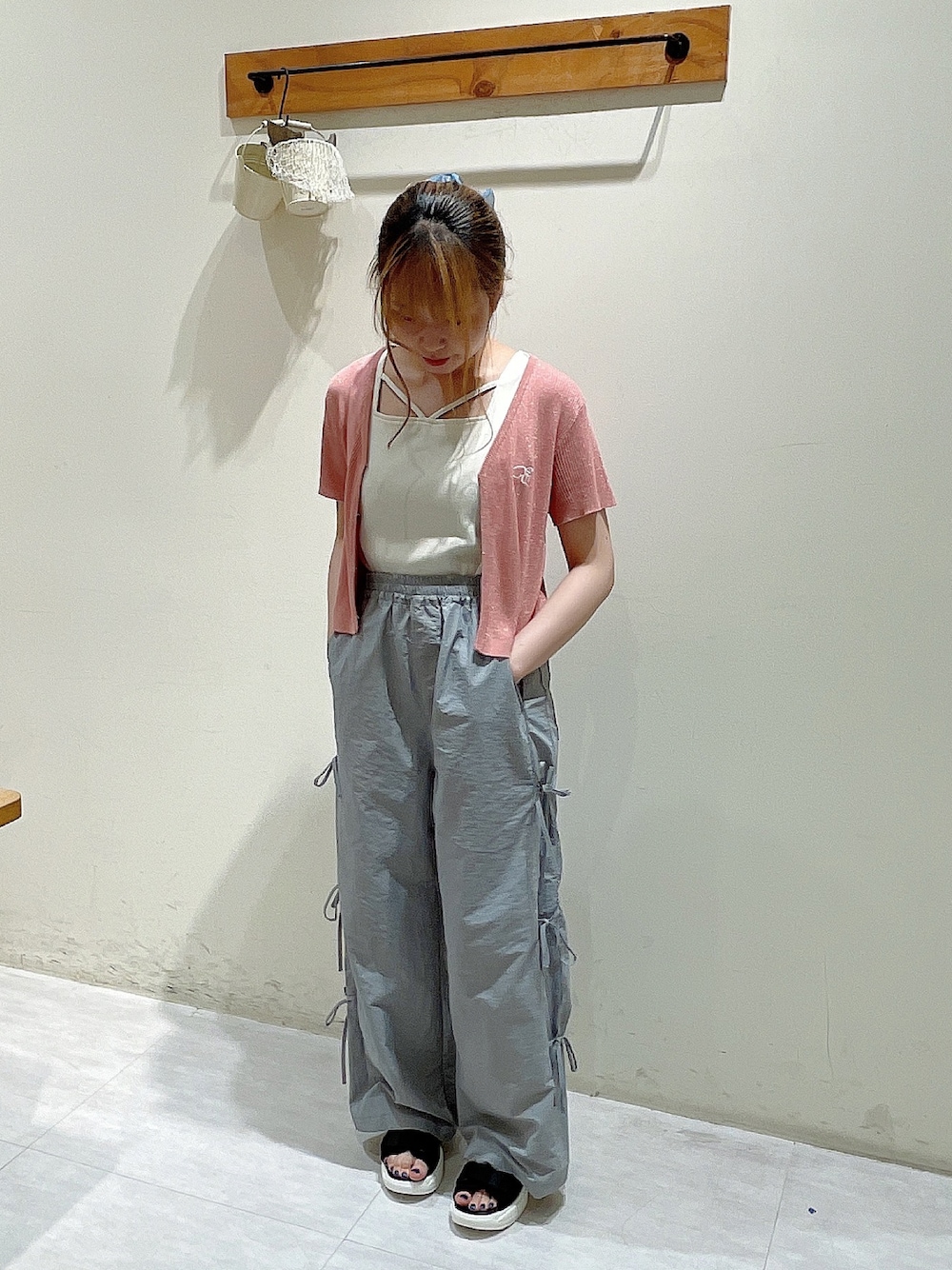 ご覧いただきありがとうございます! カーディガンはキラキラのラメがとても可愛いです😖💖 短めの丈がスタイルアップに!!💃 薄手で着膨れしにくい所もポイントです◎ パンツもリボン付きでトレンド感upです!🎀 ナイロンは軽くてさらっと着られる所が良いですよね˙ᵕ˙♡ 私には少し長めだったので厚底サンダルを合わせました🤫