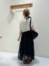 ご覧いただきありがとうございます! ガーリー派のモノトーンコーデです🖤🤍 ̖́- モノトーンにすると甘くなりすぎず大人の方でも着やすくなります🙌🏻︎ カーディガンは伸縮性がありとっても着やすい推しアイテムです👆🏻♡ 二の腕すっぽり隠れる長さなのでお袖の短いトップスと重ねても良いですよね。。 ティアードスカートは動いた時のシルエットがふんわりとしていて可愛い…! 足元は透け感があるので黒でも重たく見えにくいです🐼◎