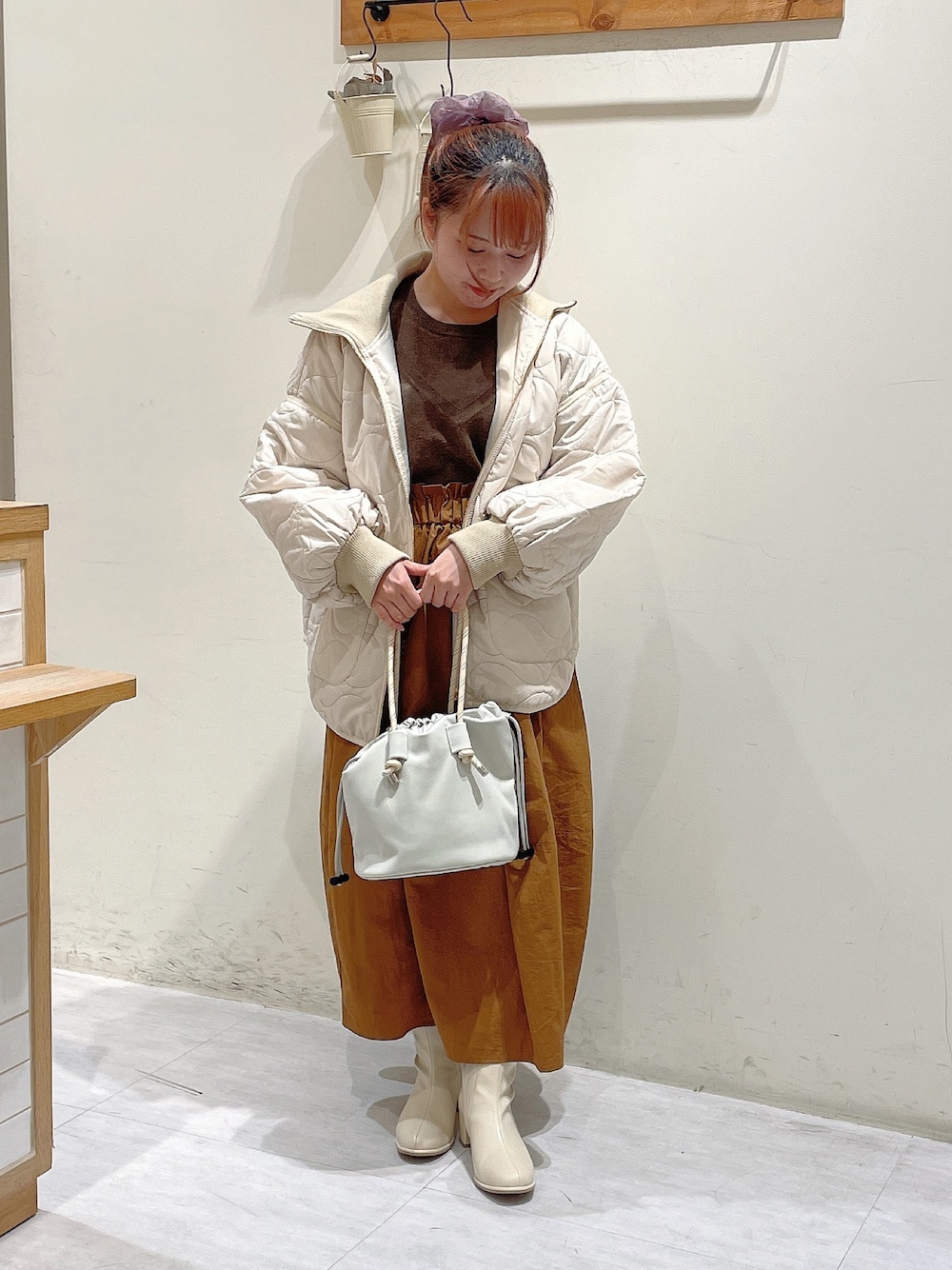 ご覧いただきありがとうございます! 店頭でも大人気キルトジャケットです! カジュアルもキレイめも使える万能デザインです✨ ゆったりしていてニットなどの重ね着が増える季節にも、ストレスフリーで使えます👌´- スカートはウエストのシャーリングがスッキリと見せる効果あり🫶🏻🫶🏻 パンプキンカラー可愛いですよね🎃 人気のナイロン素材でカジュアルに着こなせるので普段使いにもオススメです!