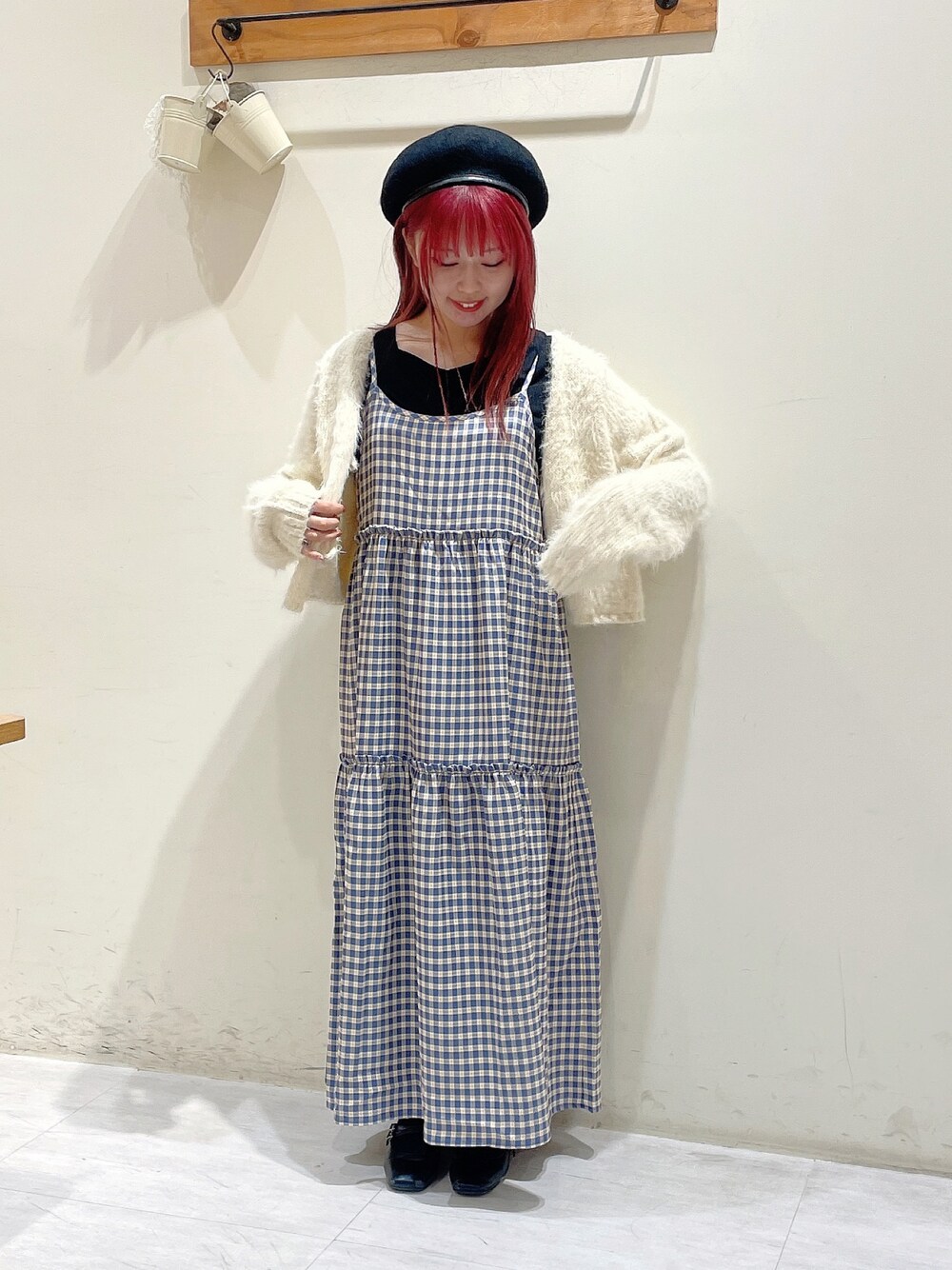 ご覧いただきありがとうございます! レトロな色合いが秋服に馴染むキャミワンピースです🕰 ティアードデザインがアレンジ無しでも可愛くきまります𓂃 𓈒𓏸◌ ポリエステル&レーヨンの洗濯に強くシワになりにくい素材が安心です😌🙌🏻 カーディガンはふわふわのシャギーニットで冬に着たいコーデです☁️ こちら前後2wayになっているので、印象チェンジも簡単に出来てしまいます◎ フロントリボンのデザインになっているのですが、あえて前で縛らずシンプルに着用してみました!