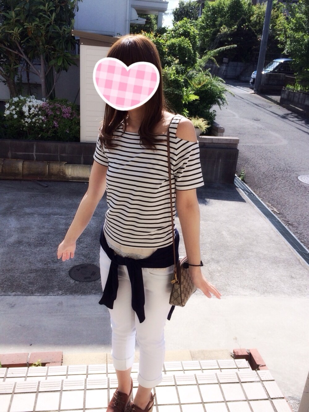 ボーダートップス:Avail カーディガン:UNIQLO きょう暑い!この格好にスニーカー合わせてみてもよかったな〜
