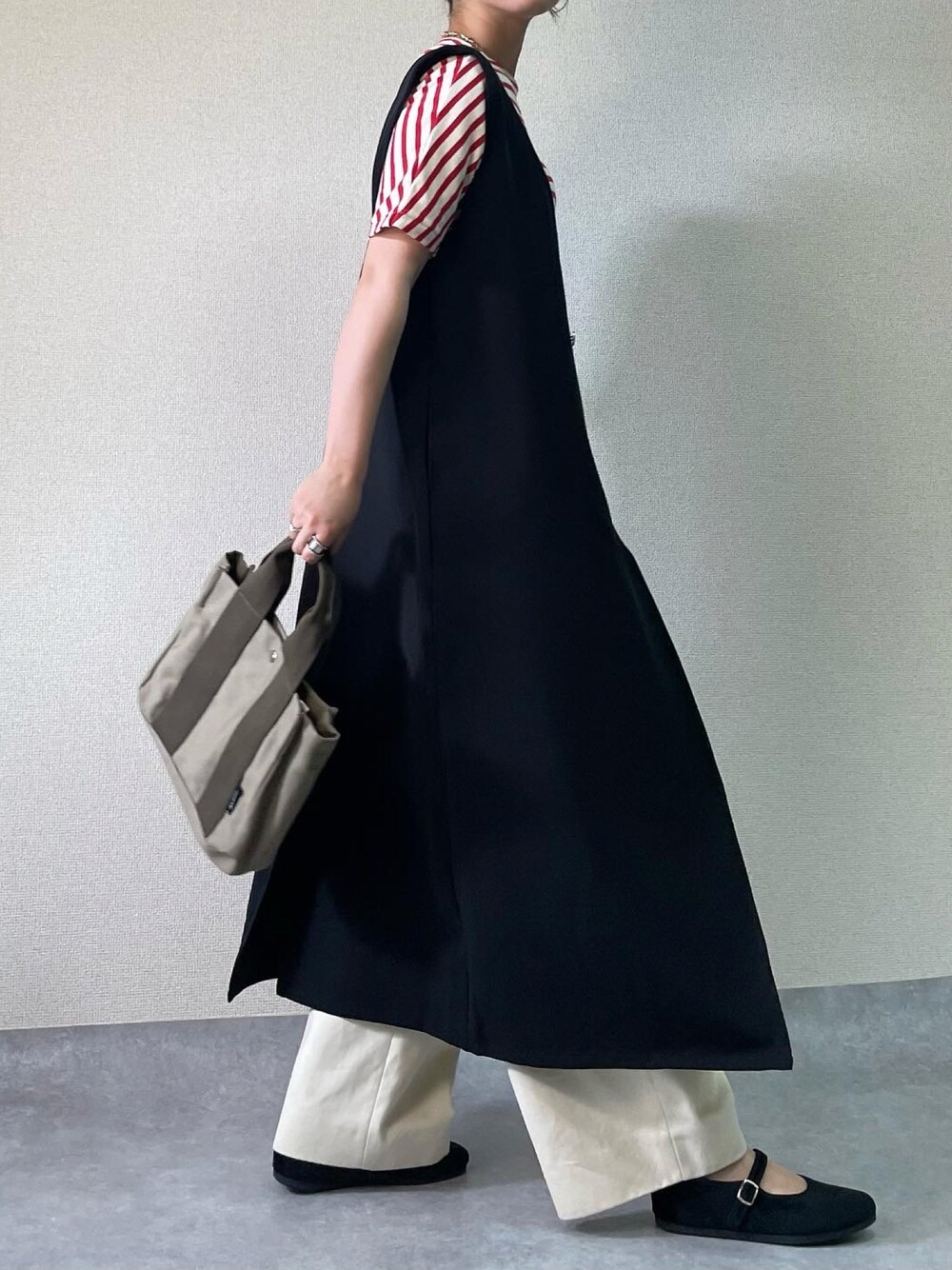 【 ジャンパースカートコーデ 】 @riberry.official さんの 2WAYダブルボタンロングジレ/ジャンパースカート 前後2wayでロングジレとジャンスカどちらも楽しめます🌞 インナー次第で色んなレイヤードコーデ着回せます😻 タンクトップに合わせても可愛い☺️🫰🏻 今日ZOZOさんで¥1,000ですよ〰︎🥹‼︎ tops : #anatomica onepiece : #riberry bag : shoes : #lacadene #ootd #今日のコーデ #きょこ #レイヤードコーデ #プチプラコーデ #プチプラ #ファッジ #クルーエル #お洒落さんと繋がりたい #fudge #cluel #pr #오오티디 #ジャンパースカート #春コーデ #春夏コーデ #リネン #スニーカー #バッグ #バッグコーデ #レイヤード #ボーダートップス #スニーカー女子 #淡色女子 #フレンチカジュアル