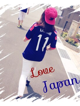 「adidas(アディダス)のサッカー日本代表ユニフォーム(Tシャツ/カットソー、ブルー系)」を使った、ayukaさん(レディース)の夏コーディネート