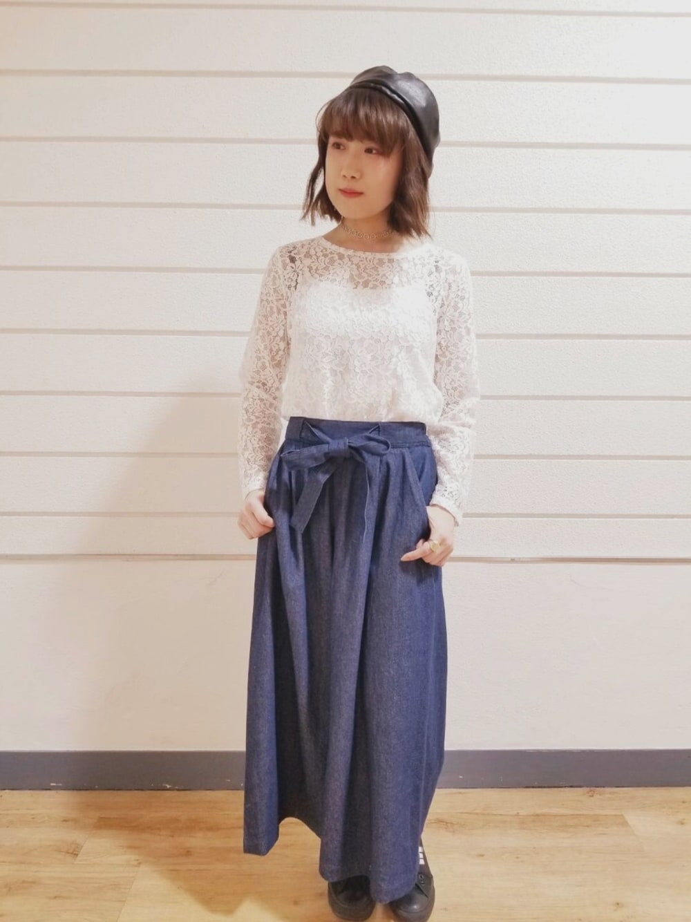 AYUのハンチング/ベレー帽「【Seventeen 6月号掲載アイテム】合皮ベレー」を使ったコーディネート