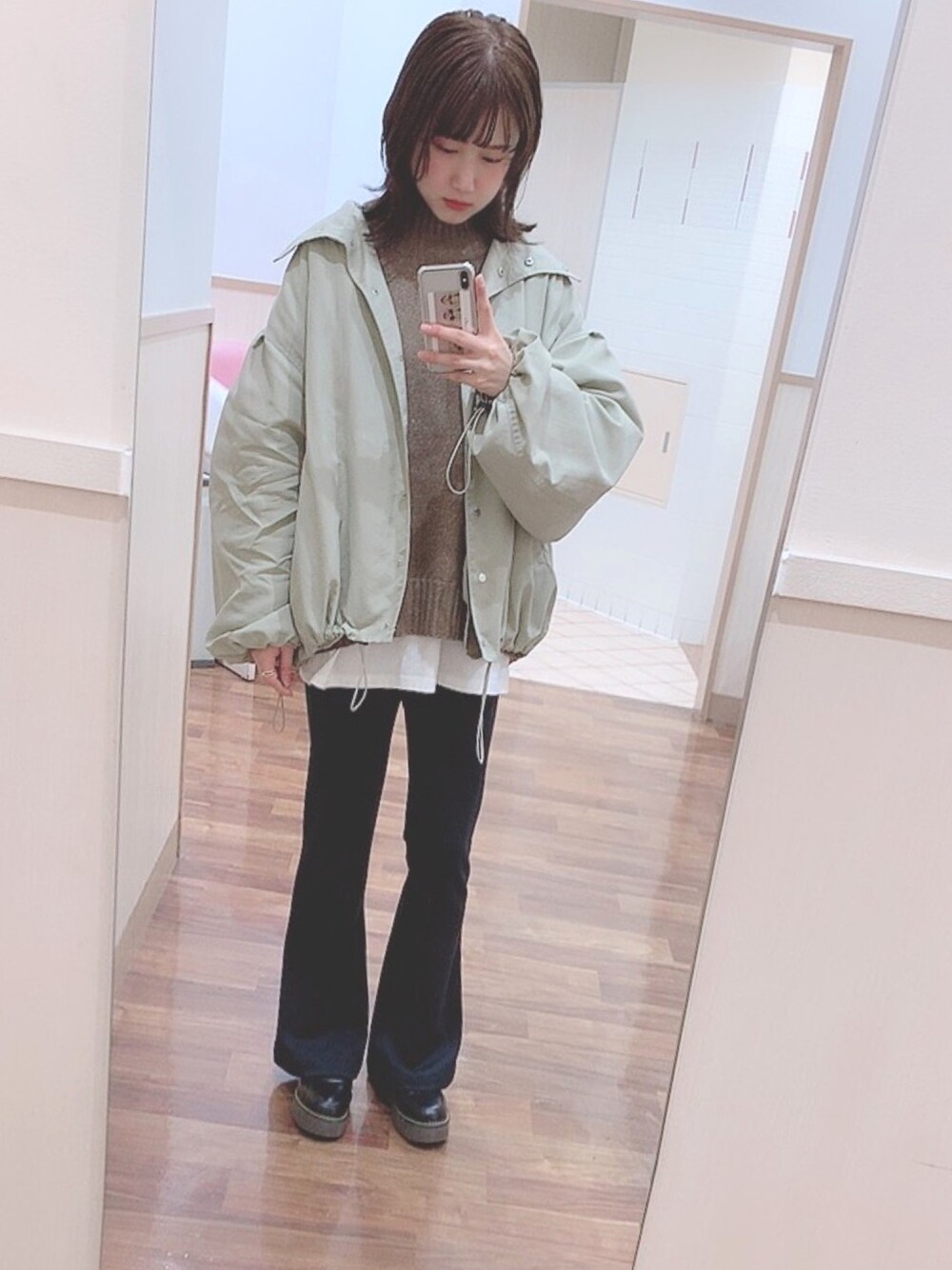 休日コーデ⛄ 気温の低い東北はアウターが必須! アウターも含めたコーデが重要~🤔 スッキリシルエットのフレアパンツ に上はボリュームを持たせて季節感 をプラス✌🏻️ カスタネのアウター、形変わるから めちゃくちゃ使える😉