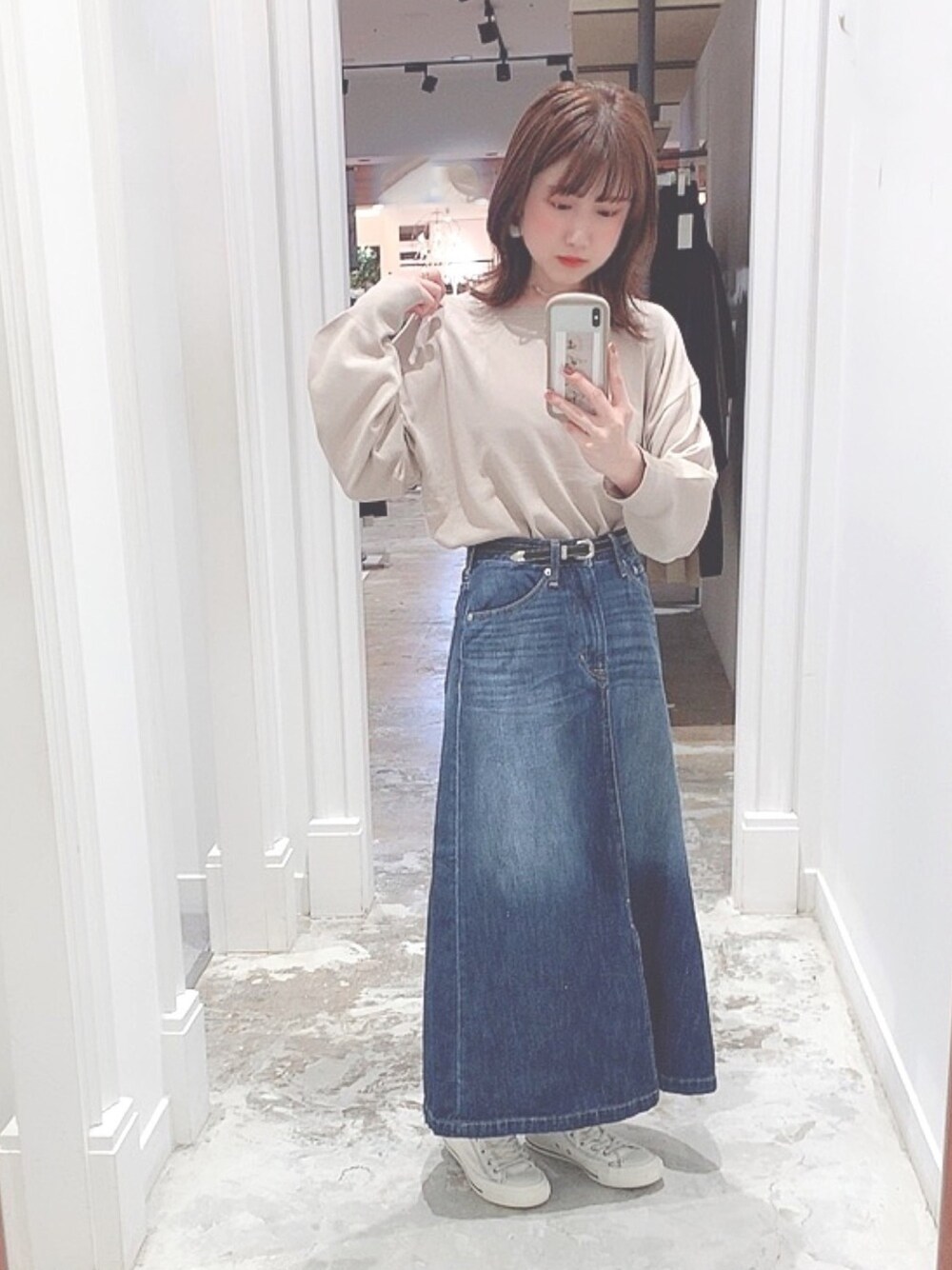 2/7からアメホリ春ビジュアル解禁🐝⋆︎*゚ 春目前にまだまだ寒い!そんな時は薄手の ニットを🐑 着用のニットは首元が横にざっくり開いた ボートネックだから、肌見せで冬とは違う ニットコーデに! 開いたところからレースをチラ見せさせる とキレイめになりすぎず可愛い印象に❣️ 下は定番デニムロングスカート! 程よいAラインでスタイルアップ効果も✨