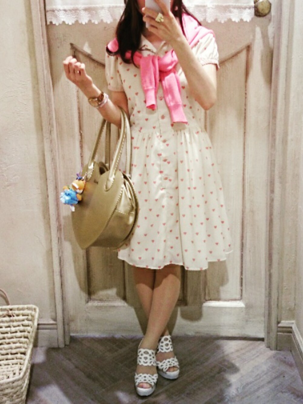 お気に入りのbebe♡ドレスを久しぶりに着ました!ハートまみれです。:+((*´艸`))+:。