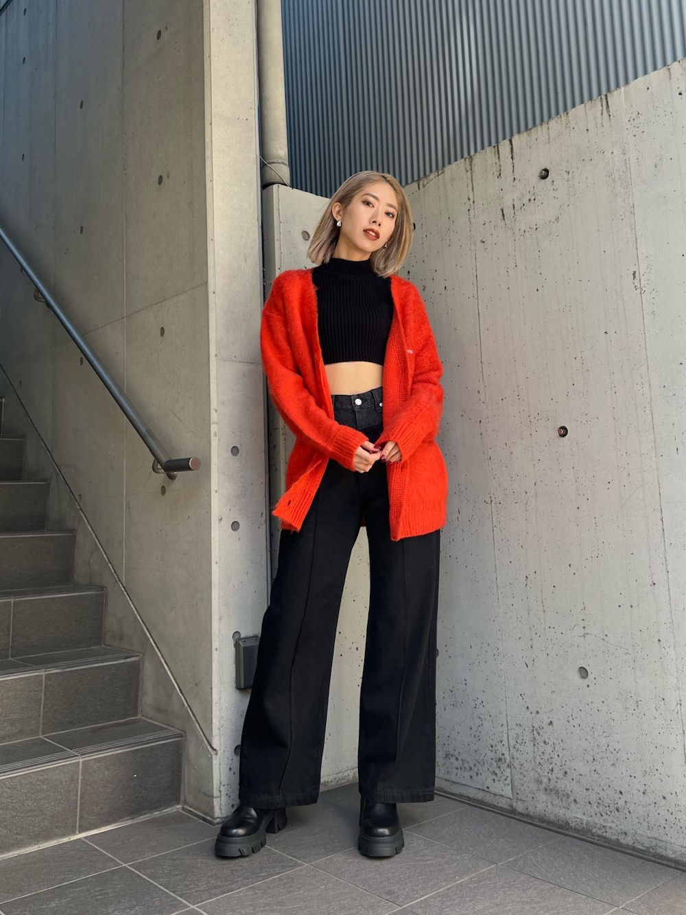 持ってて損はないアイテム❤️ ゆったりのニットカーディガン🧶 コラボ限定のビビットカラーが 可愛すぎて、秋冬コーデの ワンポイントにオススメです🙌🏽 170cmの高身長でもゆったり 着れるアイテムなのでワンピース風や デニムにサラッと羽織るだけなど いろんなコーデを楽しめます💙🖤