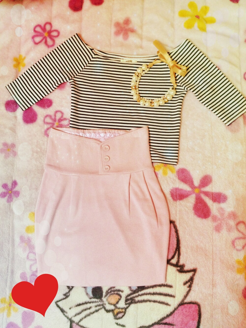 *ボーダーショートトップス snidel *ニットタイトスカート snidel *パールネックレス ノーブランド