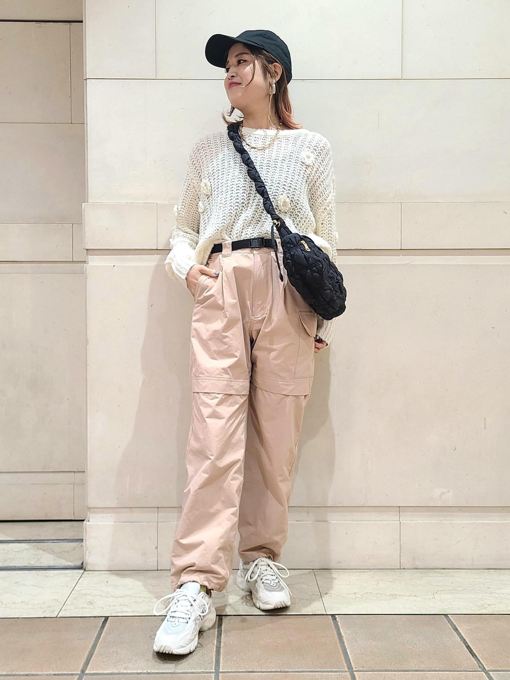 ayukami(VIS ジョイナス横浜)のニット/セーター「お花ぽんぽんシアーニット」を使ったコーディネート